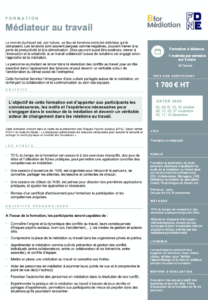 L’objectif de cette formation est d’apporter aux participants les connaissances, les outils et l’expérience nécessaires pour s’engager dans le secteur de la médiation au travail